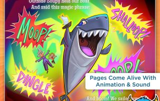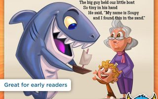 Gutter races with Grandma are the best! But when a beloved toy boat is lost down the sewer, all seems lost until a friendly shark returns it and takes the boy and his grandma on a fantastical underseas adventure. Children ages 2 – 8 will love uncovering the interactive jewels in this tale of a boy and his Grammy and their new special friend.